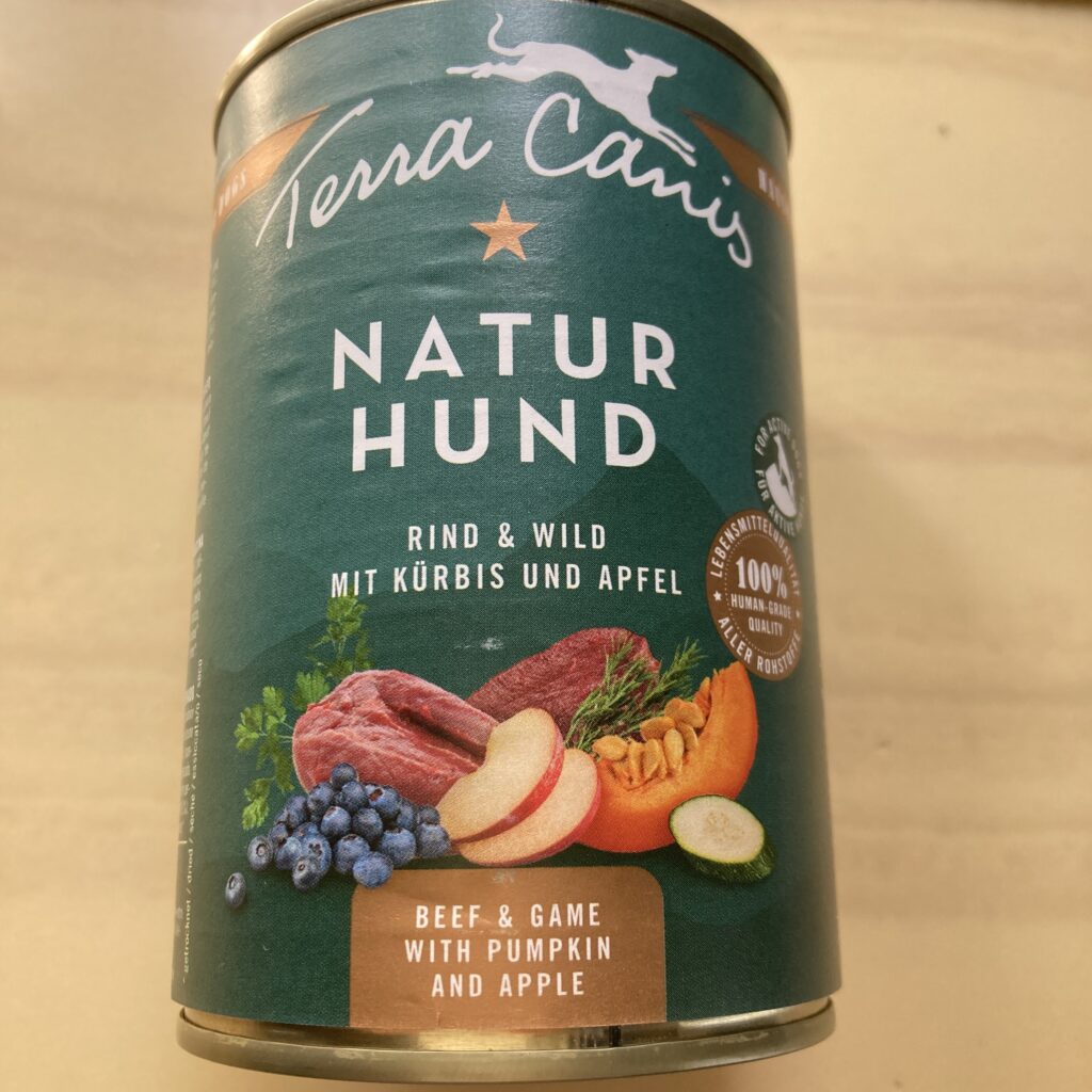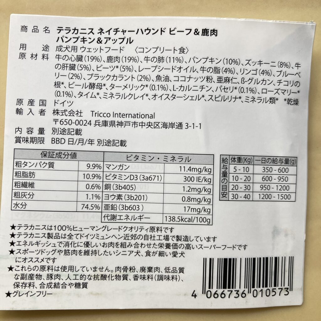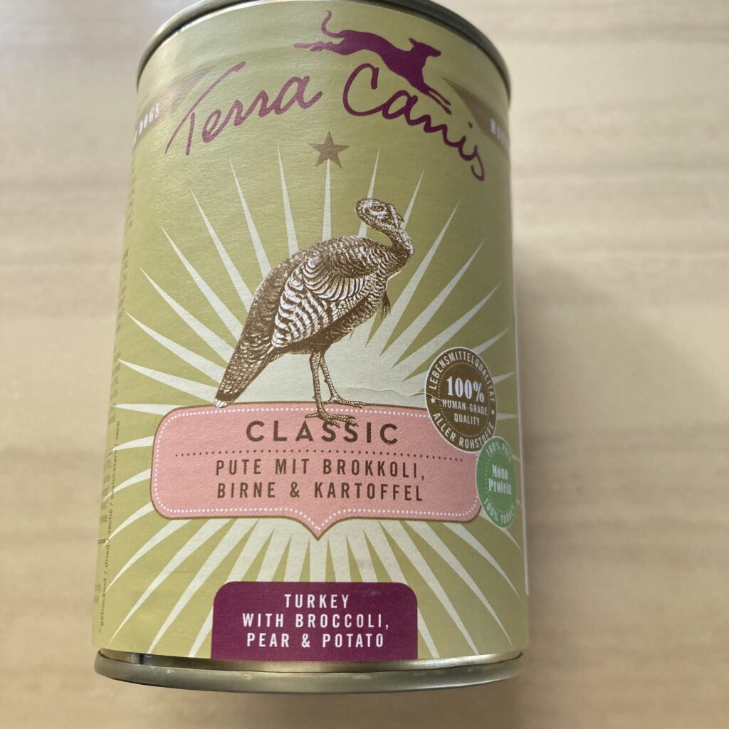 ランの食事はドライフードとこちらの缶詰です。
