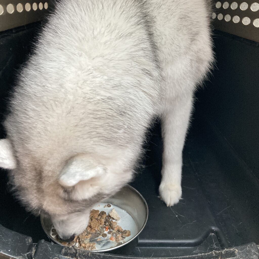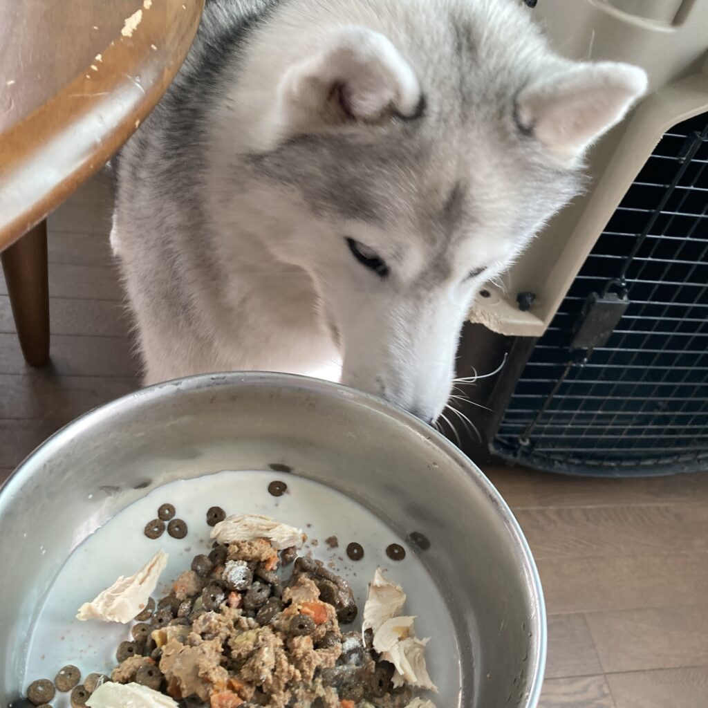 待ちかねてソワソワしていたランはものすごい勢いで食べていました。