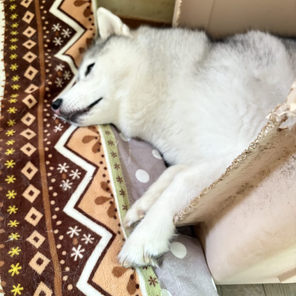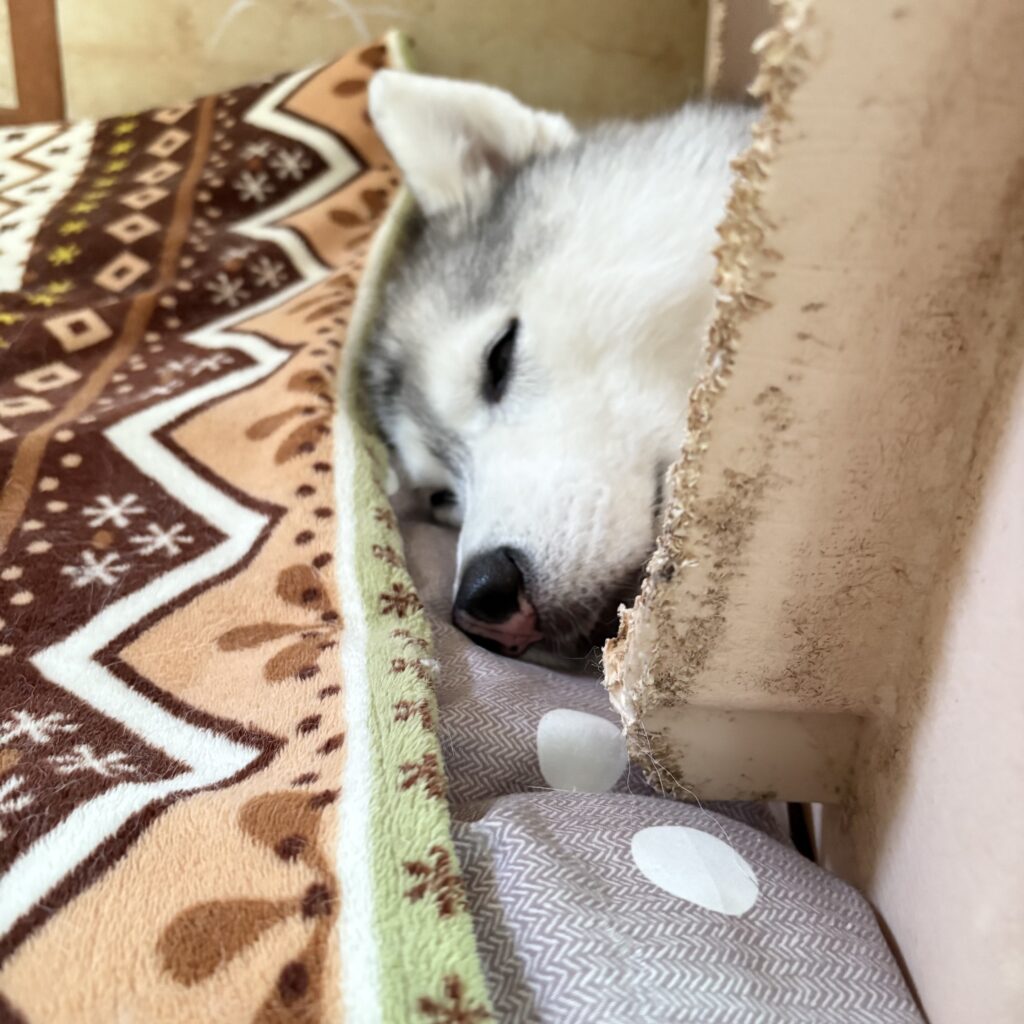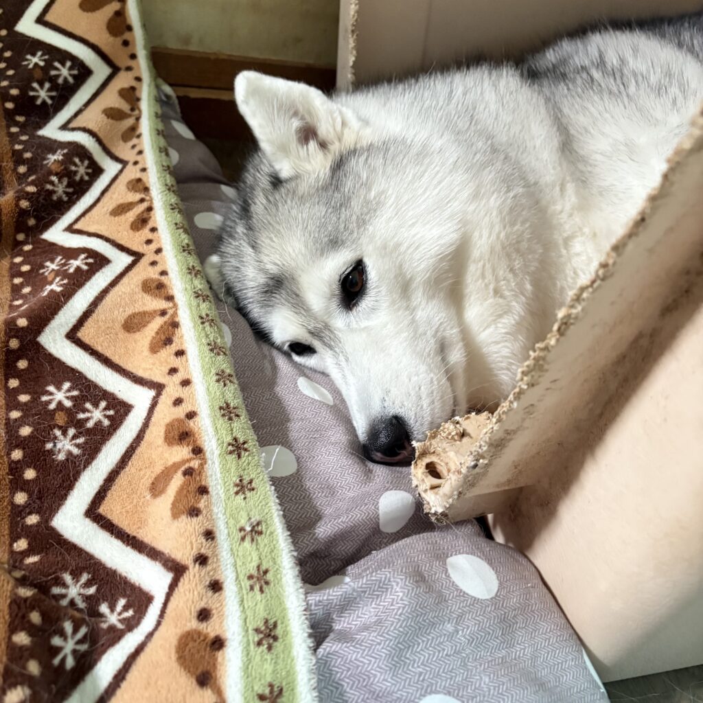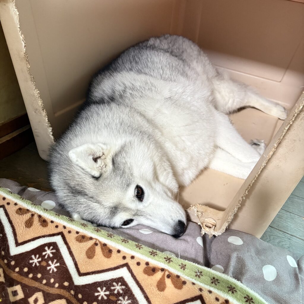 レイラが使っていたクレートに時々入り込んでいるラン。