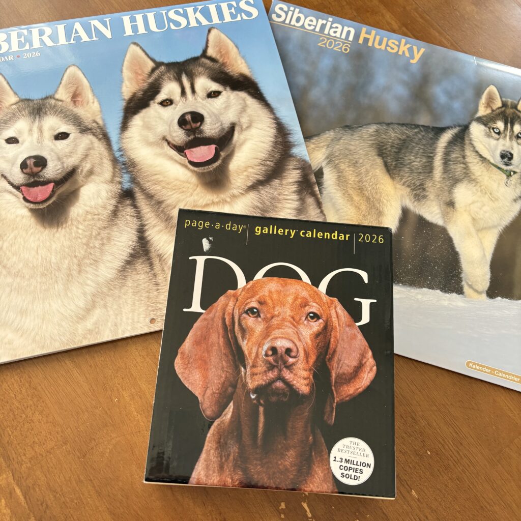 ハスキーの壁掛け用と多数犬種の日めくりカレンダーです。