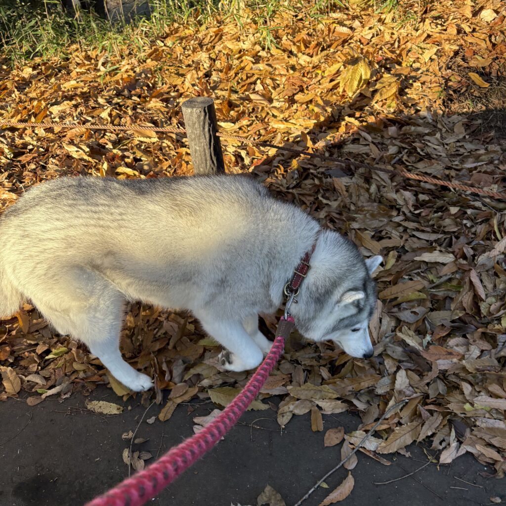 寒い寒いとつぶやくランママにかまわず、今朝も公園の落ち葉ふみふみを