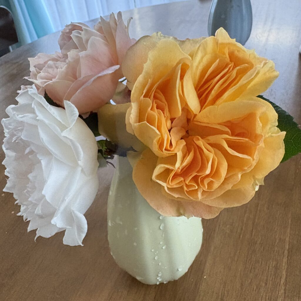 今日は新しい写真がないので、最近のテーブルを彩ってくれたバラを再掲載です。