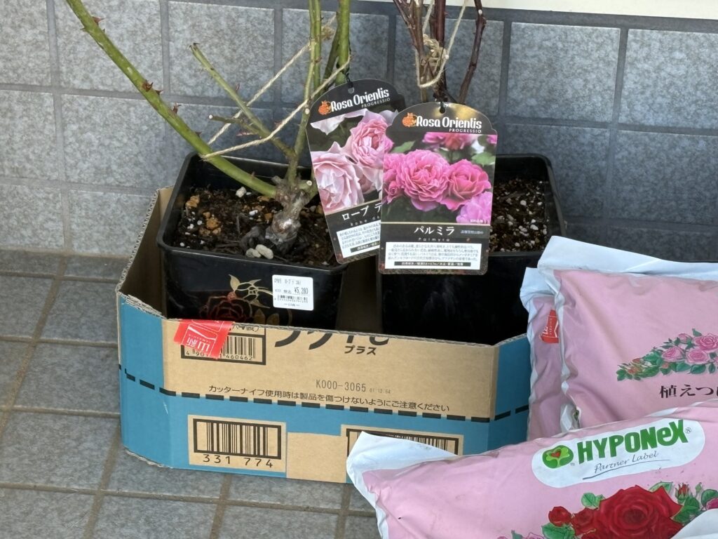 株周りの盛り土用に使っているHYPONeXです。来週中にも肥料と一緒に根元に被せてやりましょう。って!あれれ土よりも目立ってる物が写ってますね😀 もう春用の苗が出てるだろうなぁって思っていたのですが、もし出てたら気をつけないと散財しちゃうよなぁって思っていたのに・・・あーやっぱり買っちゃいましたよー、まだ庭にないロサ・オリエンティスの株です。